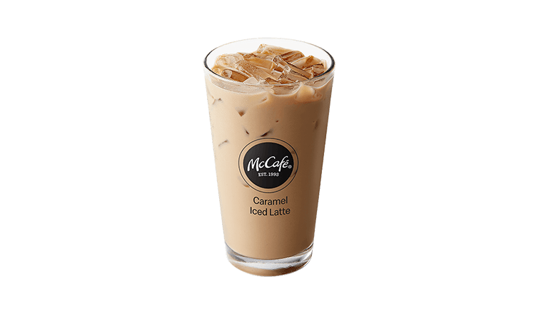 Cool down with a cold McCafe Caramel Iced Latte, made from 100% Arabica beans. This delicious Iced Latte is made fresh just for you with cold milk mixed with Caramel flavor.