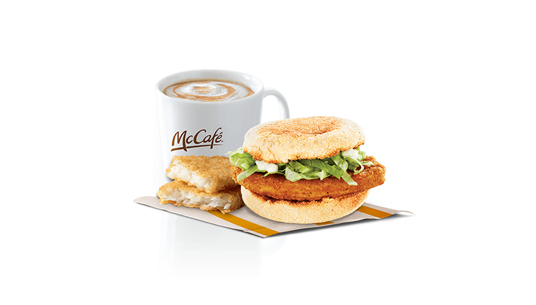 Wake up to a McDonald’s Chicken Muffin breakfast – freshly toasted English muffin topped with special chicken patty, crispy lettuce and mayonnaise and a crispy golden hash brown.Enjoy it with a steaming hot cup of our delicious coffee.