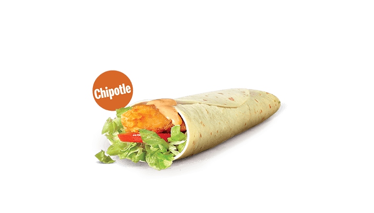 Our Chipotle Wrap made with crispy chicken strips gathers the tastiest ingredients from tomatoes, to green lettuce, topped with our delicious Chipotle sauce and of wrapped in a soft flour tortilla.