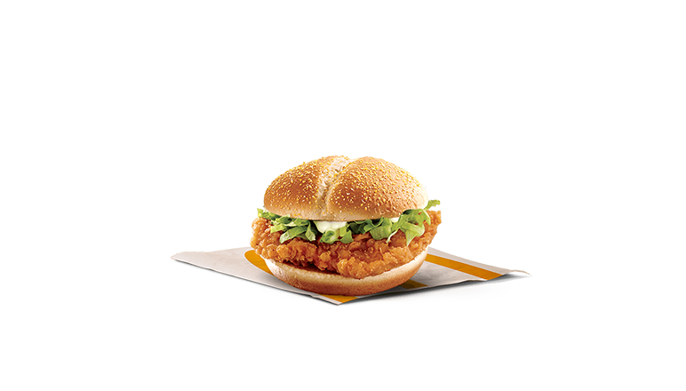 Deliciously hot & kickin’! Between the corn dusted bun lies tender, juicy, boneless chicken thigh meat, encased in a crisp and crumbling spicy crust, all topped with fresh lettuce, cheese and creamy mayonnaise to set your mouth on fire.