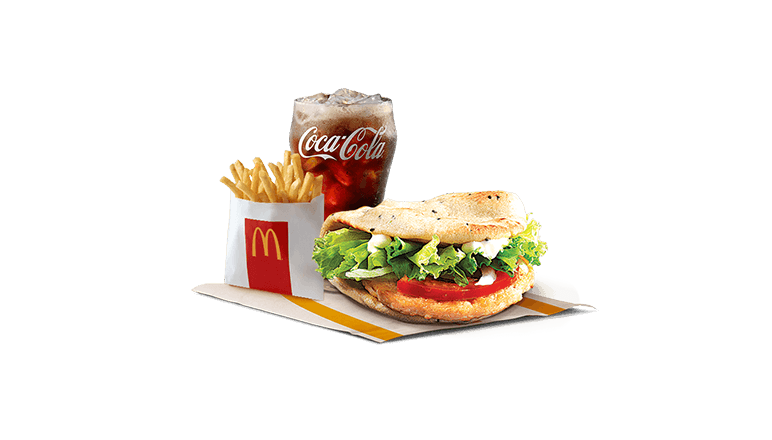 One of its kind! Grilled chicken patty (de-boned breast meat), Arabic bread, lettuce, tomatoes, onions, garlic sauce give you a unique and unforgettable taste. Enjoy it with chilled cold drink of your choice and our world famous crispy fries.