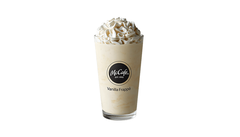 Blended, tasty iced drink with milk, delicious Vanilla and rich coffee flavours.